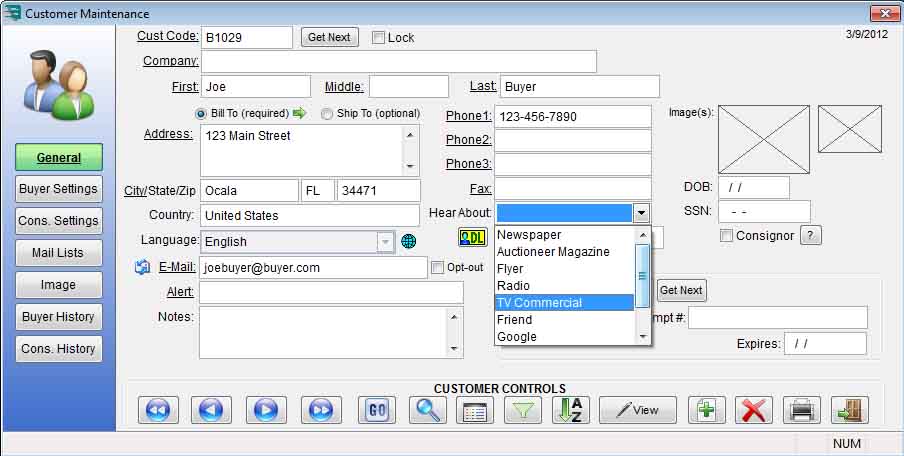 The Hear About Us field is completely customizable based on the advertising used by your company. This drop down menu in the customer record may be changed from auction to auction. This provides excellent information regarding how new customers are finding you as a business on an auction by auction basis. Printing these reports will assist in determining which means of advertising are working better than others. If you have any questions regarding this or any other feature please Contact Us!